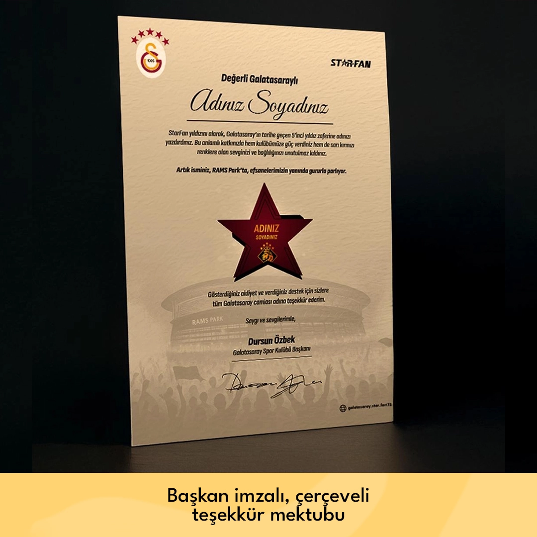 Premium Yıldız ile adını RAMS Park’ın seçkin bölgelerine taşı, hem kulübüne destek ol hem de bu unutulmaz sezona ismini yazdır.